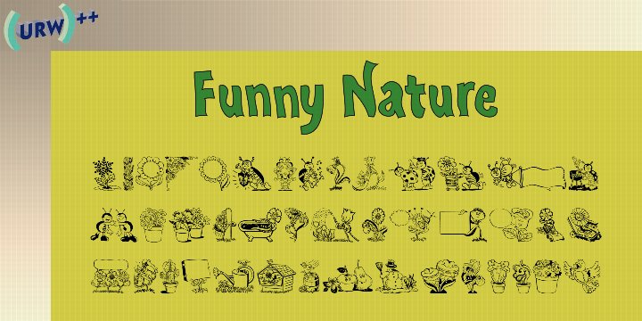 Funny Nature is not a typeface but a collection of small, comic-like symbols. Lüdicke used to work often for a supplier of gardening equipment etc. He had to come up with new, original and vivid ideas for the design of catalogues and ads. He designed Funny Nature, a wonderful collection of illustrations. Can you hear the humming and buzzuing, can you smell the flowers?